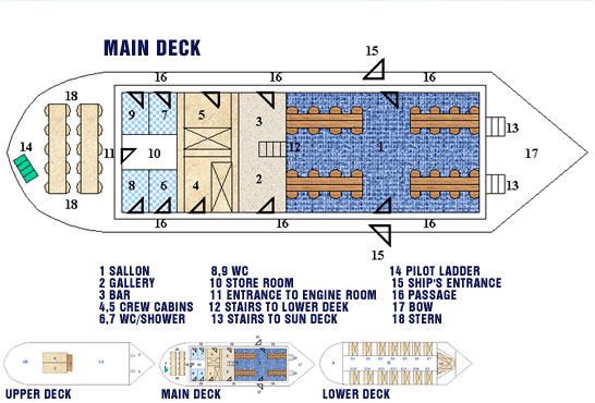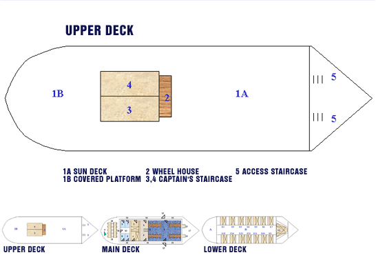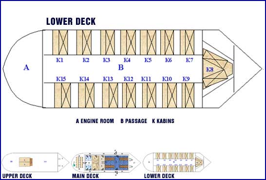 Klimatisierter Salon und durchgang auf dem Unterdeck für die Kabinen