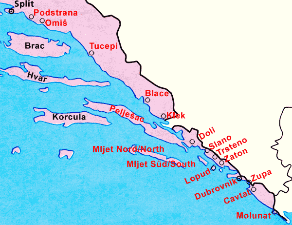 Tourist Map of Region Zadar - Dubrovnik