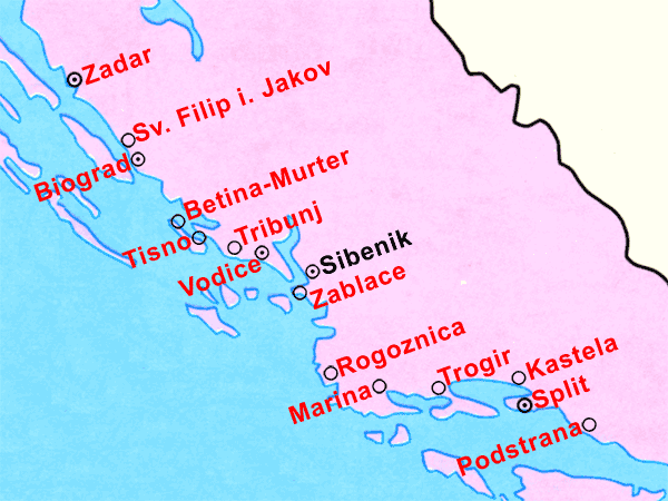 Tourist Map of Region Zadar - Dubrovnik